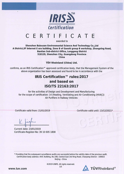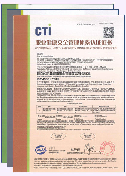 百歐森為“國家高新技術(shù)企業(yè)”與“國家守合同重信用企業(yè)”;國家標(biāo)準(zhǔn)制定者之一;全球唯一獲得“IRIS認(rèn)證(TS22163)”的空氣凈化企業(yè)。深圳知名品牌;被廣東省科學(xué)技術(shù)廳授予《廣東省空氣智能監(jiān)測與凈化工程技術(shù)研究中心》,具有消毒產(chǎn)品生產(chǎn)企業(yè)衛(wèi)生許可證、環(huán)保工程專業(yè)承包資質(zhì)、中國環(huán)保產(chǎn)品認(rèn)證,中國節(jié)能產(chǎn)品認(rèn)證、3C認(rèn)證、CQC認(rèn)證等資質(zhì),目前擁有國家專利100余項(xiàng),數(shù)百項(xiàng)專利持續(xù)申報(bào)中。