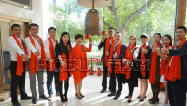 2016年9月9日,深圳市百歐森環(huán)??萍脊煞萦邢薰荆ü善贝a:838287)新三板掛牌敲鐘儀式在北京成功舉行。在公司股東及高管、公司戰(zhàn)略合作伙伴以及媒體記者的共同見證下,董事長鄔婭玲敲響了開市寶鐘,標(biāo)志著百歐森環(huán)保正式邁入資本市場新時(shí)代,迎來了其成長史上的重要一刻。