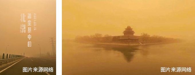 3月15日,北京遭遇沙塵天氣。故宮午門、角樓、北海白塔在漫天黃沙中若隱若現(xiàn), 仿佛蒙上了一層橙黃“濾鏡”。